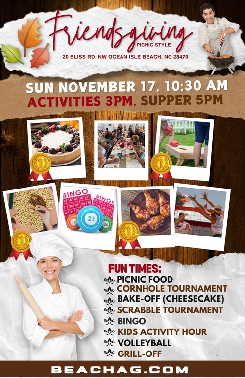 🧺 3:00 - Activities begin. First drop off any food items at the FELLOWSHIP HALL (enter rear doors of the church), then PARK & join an activity. (FRIENDS need not worry about bringing food...just come & enjoy!😉)